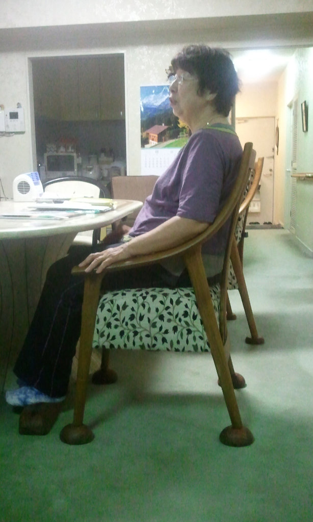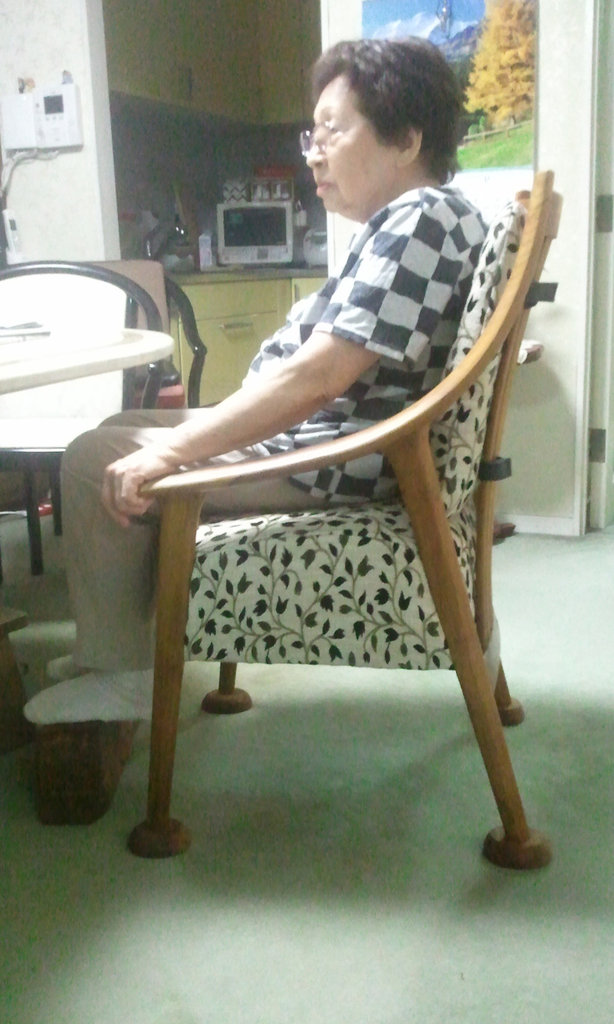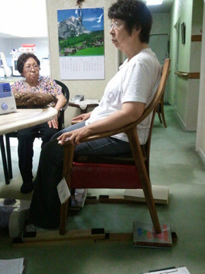 今までは、たくさんクッションを使って、椅子に自分を合わせていたお姉さん。