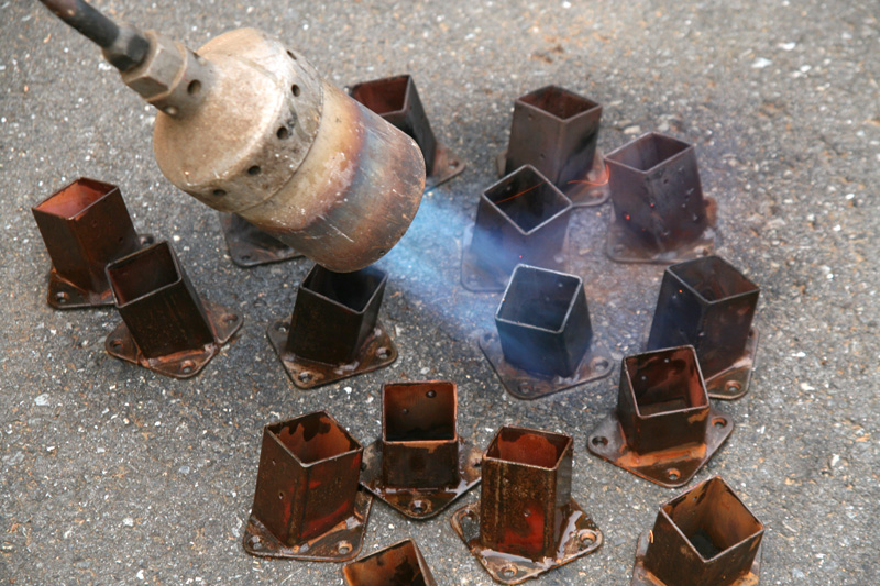 なんと、鉄にWAXを塗ってから、バーナーで焼いています。