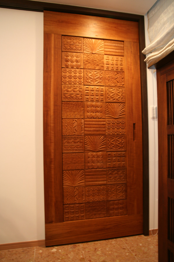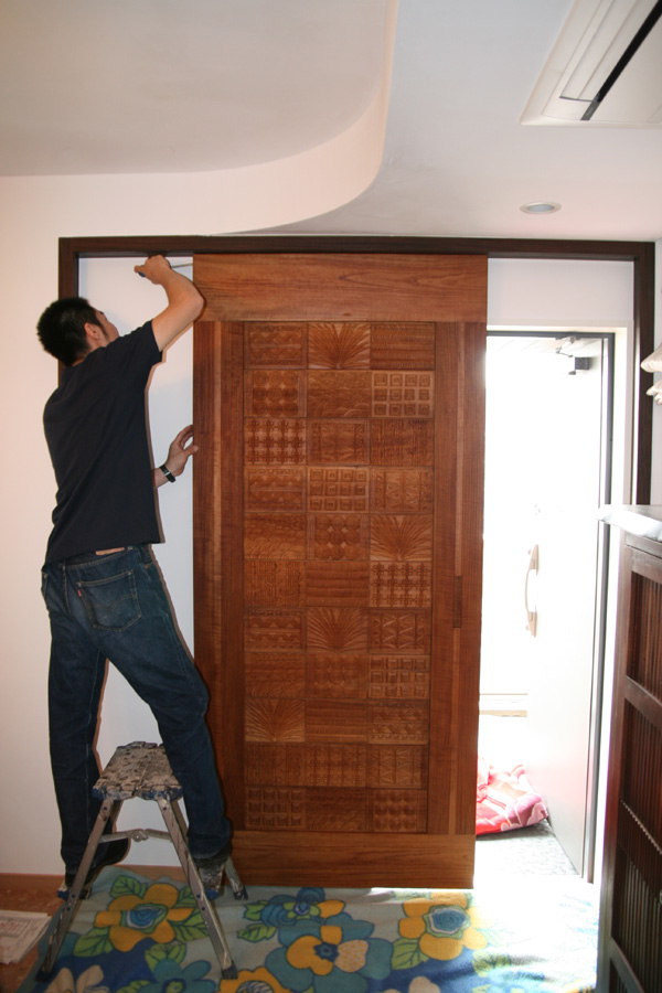 チーク無垢材を彫刻したすごいドアを納品してきました。