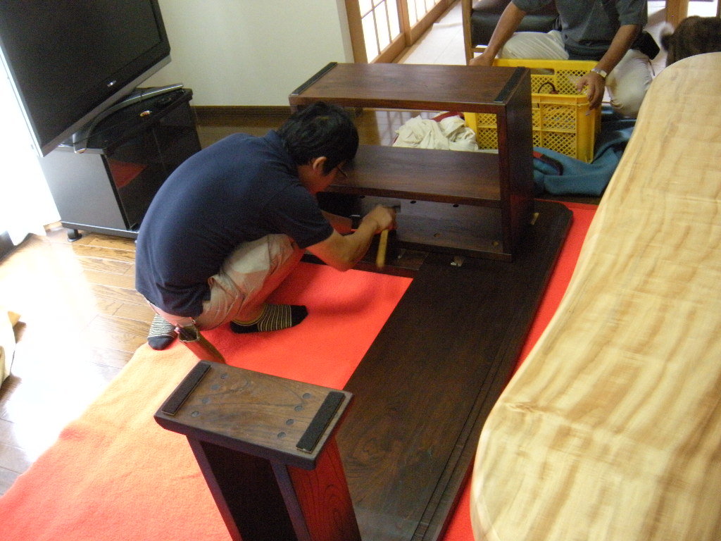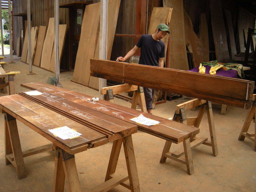 自らケヤキ古材を青山のお店に運んで来てくれました。