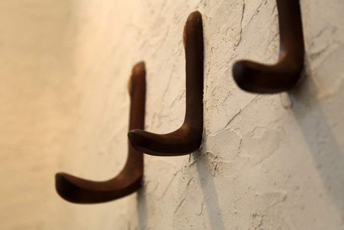 彫刻とか、鉄の鋲とか、とても感度の高いケヤキ無垢テーブル。