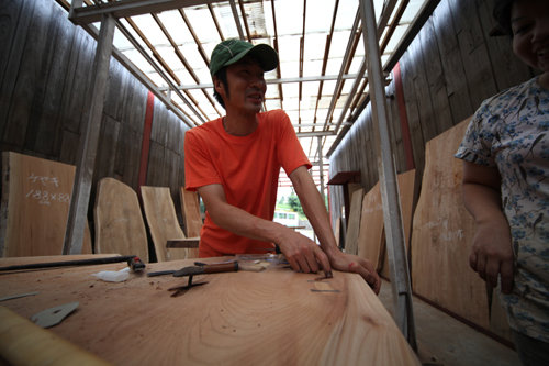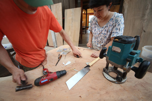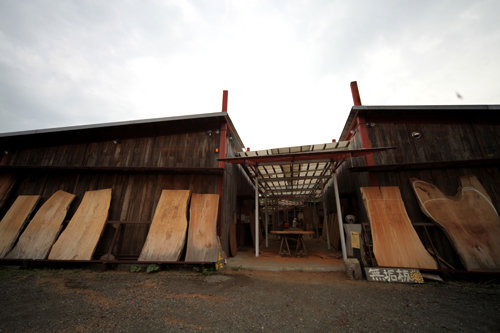 トチの曲り型タマゴテーブルに一目惚れ。
