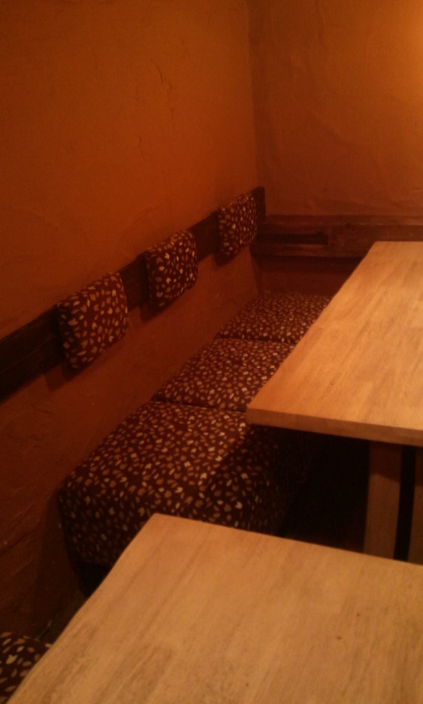 既存のスツール、背クッションも張り替え。