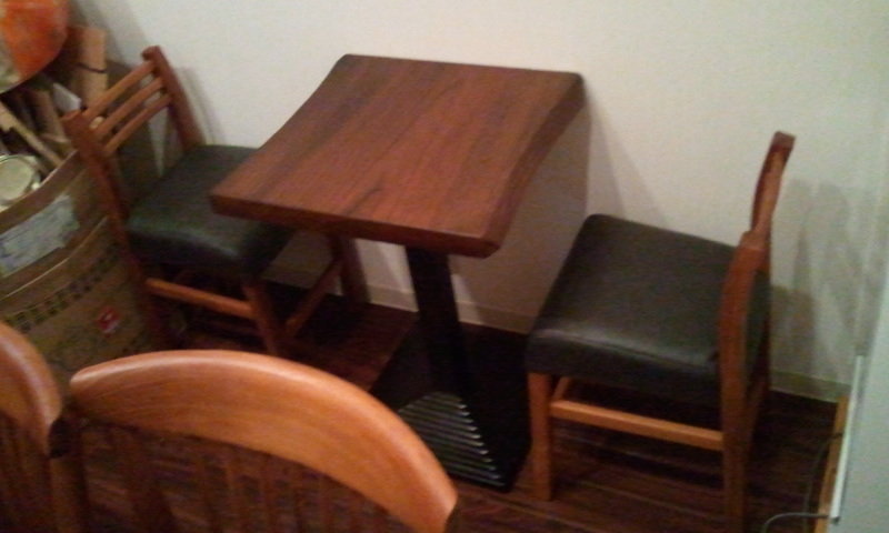 こちらの濃茶色のテーブル。 目を引きますね。 力づよく優しい。